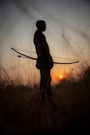 A Komo tribesman, glistening with sweat, embodies the dual roles of shepherd and farmer. The Komo engage in herding cattle, sheep, and goats, as well as hunting, fishing, and trading with neighboring communities.