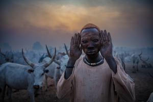 Mundari tribesmen in South Sudan tend to their cattle, massaging them and utilizing dung for fires that produce fine ash, serving as sun protection and insect repellent. These fires also provide warmth during the night, exemplifying a no-waste culture where all resources are reused.