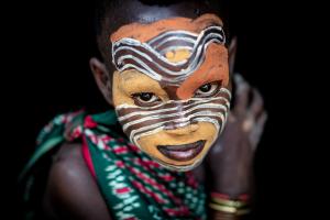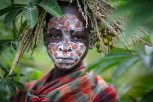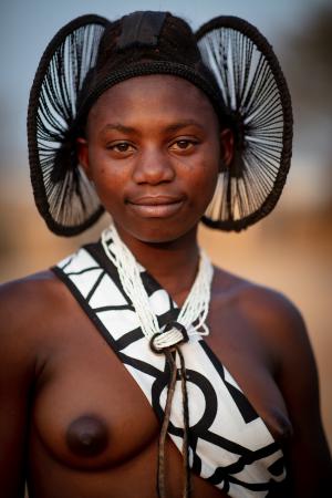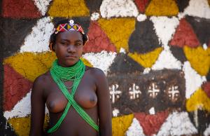 Women are circumcised by removing the clitoris. Women who are not circumcised are called animals or boys and cannot get married or wear clothes. Women wear a pleated cowskin skirt and necklaces and bracelets, they are usually married off at 17 while men are at 20. Boys are circumcised. Men wear only a checkered cloth around their waist.