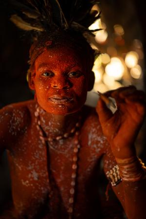 Among the Ekonda people of the Democratic Republic of Congo, a woman becomes a Walé after her first childbirth, a sacred rite of passage marked by seclusion, learning, and transformation. During this time, she is painted daily with red powder made from the ngola tree, symbolizing protection and spiritual power. After months or years in isolation, she returns to society in a grand ceremony of music, dance, and storytelling, celebrated for her strength, beauty, and new role as a mother.