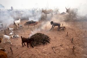 The poetry culminates at sunset, when cow horns and Mundari silhouettes intertwine in an orange cloud of smoke and ash…
